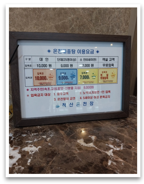 척산온천휴양촌으로 단지가 형성되어 있습니다. 그중 척산온천장으로 선택했습니다.